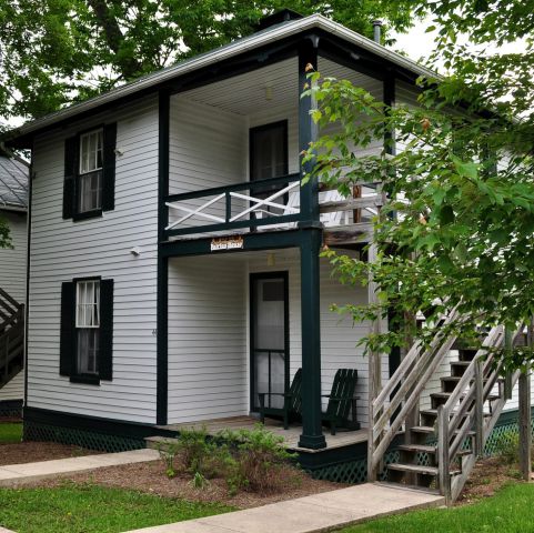 The Fairfax House is one of seven cottages located to the east of the Pennsylvania and Maryland Houses. These cottages were built in the late 1860’s on what was called Jersey Row at the Orkney Springs Hotel. The Fairfax House was renovated in the early 1980’s and contains six bedrooms and four bathrooms. Both the upstairs and downstairs have a porch for quiet rocking and relaxing.